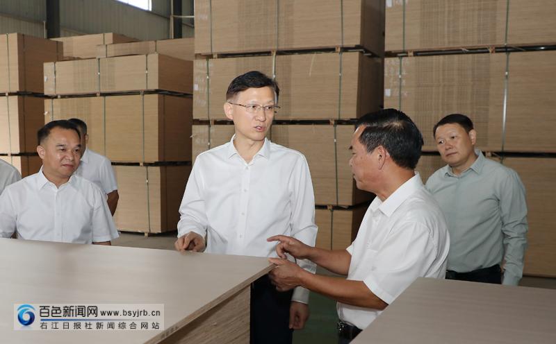 黃汝生到廣西百色現代林業產業園,走進入駐企業生產車間,與企業負責人交流了解相關情況。